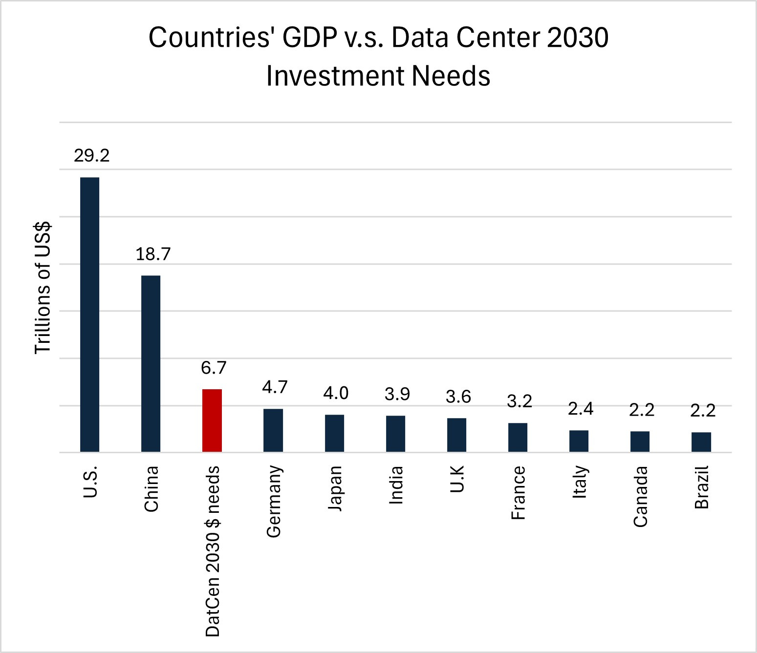 Data centers embody one of the most significant investments of our time. By superficial means, more investment (in this case, gross fixed capital formation) contributes directly to GDP growth. If McKinsey’s 2030 estimate is right and materializes, the $6.7 trillion of new investment in data centers will add a significant boost to the global economy, with countries hosting the bulk of this investment expected to grow at faster rates. Investing in data centers will enable the continued, uninterrupted and more ambitious use of AI, which some argue will have positive spillovers across the board. Key benefits include greater productivity and innovation, which enable faster growth.8