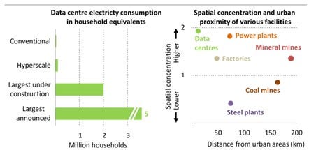 Unlike industrial facilities, data centers tend to be geographically concentrated and close to urban areas. Their electricity demand competes directly with that of households. In countries like the U.S. where the power grid is strained, this can result in power shortages or more expensive power generation, which is ultimately transferred to households.