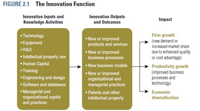 The following graphic breaks down innovation into inputs and outputs, and illustrates the relationship between innovation and productivity growth.